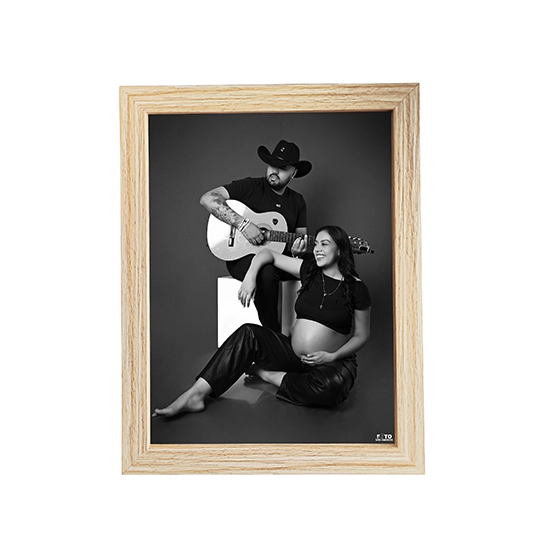 Portarretrato con pantalla digital y diseño cálido, ideal para conservar momentos familiares con contexto y estilo.