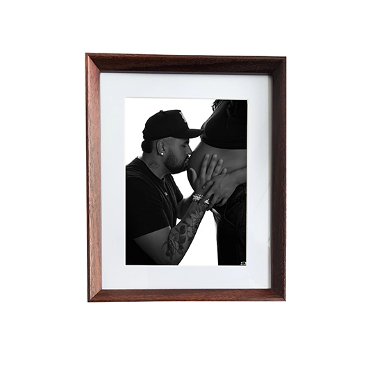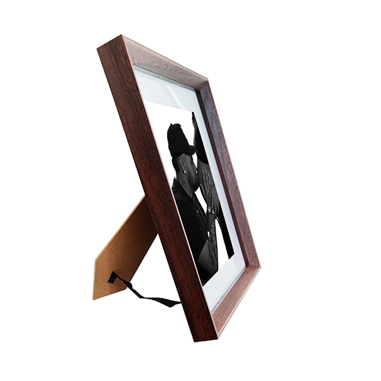 Portarretrato en madera oscura con paspartú blanco, ideal para dar a tus fotos un acabado elegante y profesional.