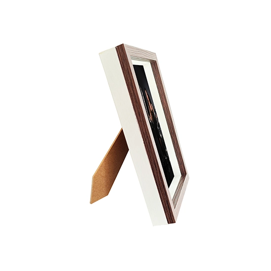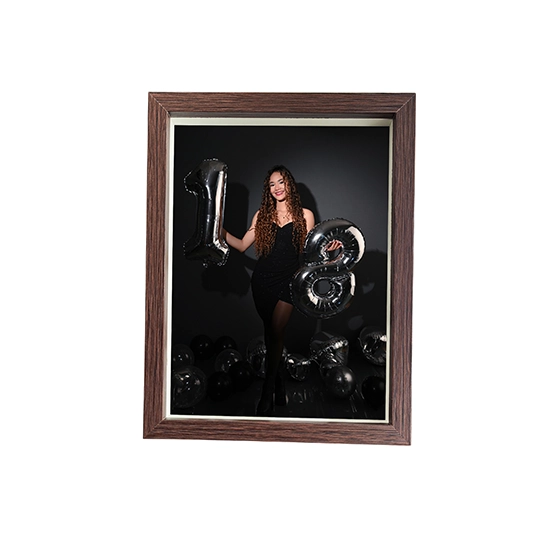 Portarretrato contemporáneo en tono nogal, ideal para retratos de estudio, cumpleaños y espacios con estilo.